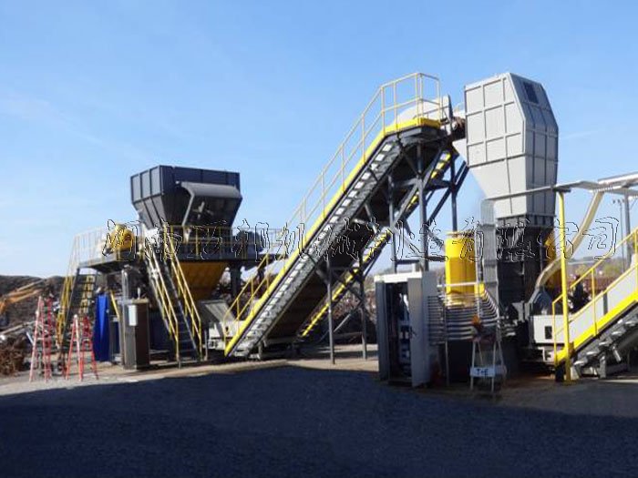 在工作過程中通過與電動機相連的減速機將動力穩(wěn)定的傳入主軸,在主軸的牽引下通過固定于主軸上的撕碎機刀片將進入撕碎機機腔內(nèi)的廢舊金屬進行卡緊,在刀片卡位的不斷下壓過程中物料被卷入兩軸縫隙,通過雙軸的撕扯作用使物料達到破碎效果,經(jīng)過破碎后的物料通常呈現(xiàn)條狀或片狀由設(shè)備底部濾出經(jīng)過傳送帶傳送進入料對供其它設(shè)備集中處理或直接收集。 該機由于采用的低速大扭矩設(shè)計在破碎廢鋼破碎機無法粉碎的廢料過程中性能突出如需對撕碎機破碎后的粗料進行細粉可在購置該套設(shè)備有在尾部加裝皮帶上料機通過與廢鋼破碎機的銜接完成整個細碎加工過程,并可通過配套相關(guān)設(shè)備實現(xiàn)廢料中金屬、塑料、玻璃的分類回收。